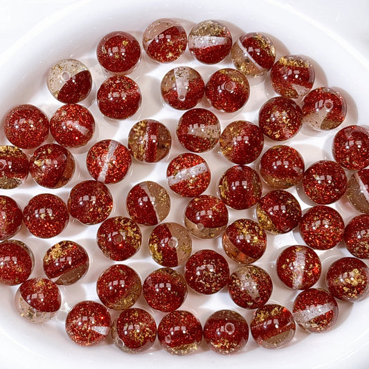 金箔入り グリッターフィーバー レッド レジンビーズ 16㎜