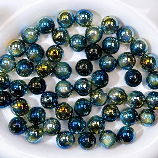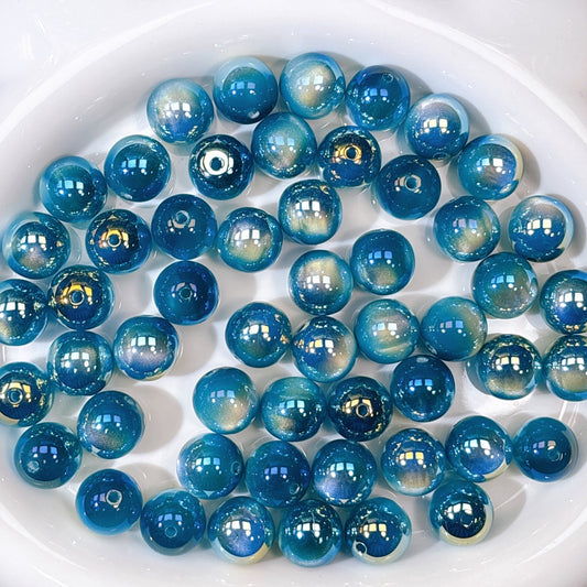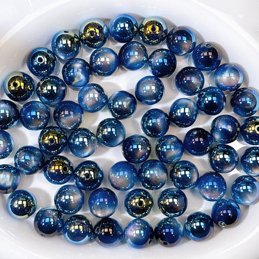 金箔入り グリッターフィーバー ブルー レジンビーズ 16㎜