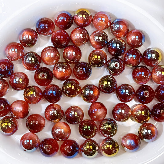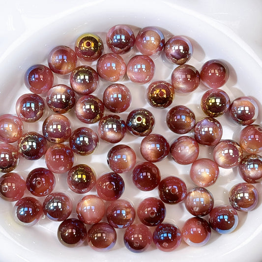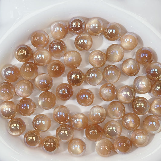 天然水晶ビーズ オーロラメッキ加工 オレンジ系 8㎜ (1連)