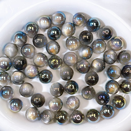 天然水晶ビーズ オーロラメッキ加工 ブラック系 8㎜ (1連)