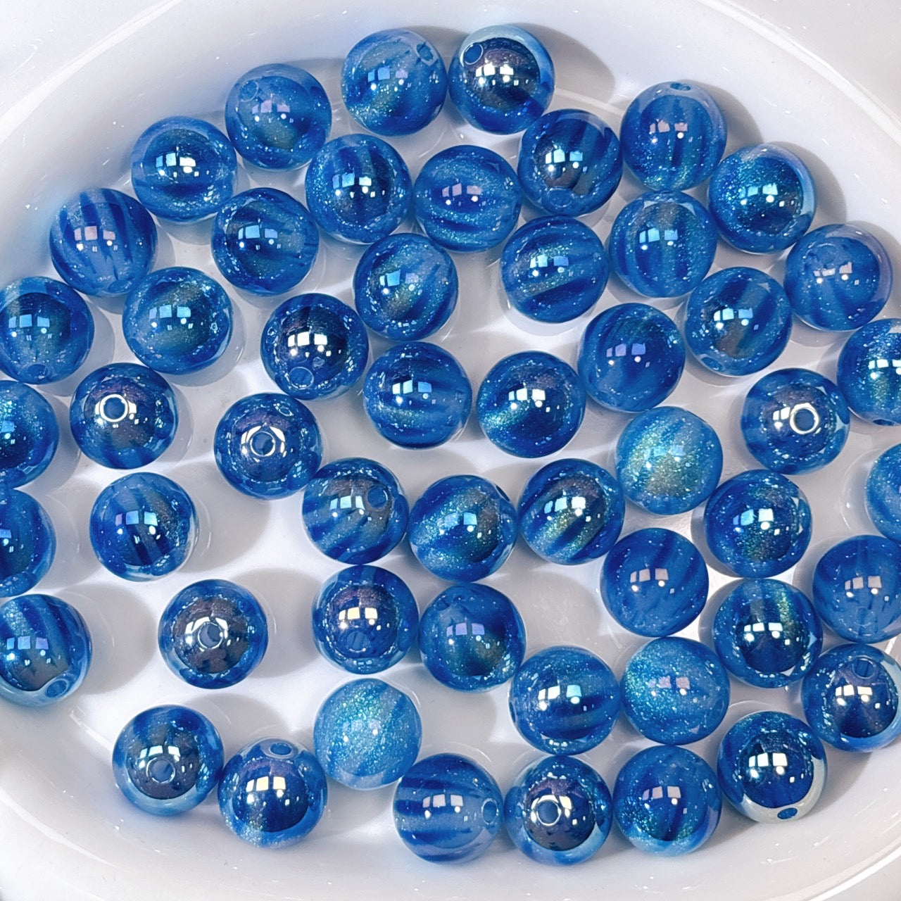 ふんわり縞模様 青色 光学ビーズ 16㎜