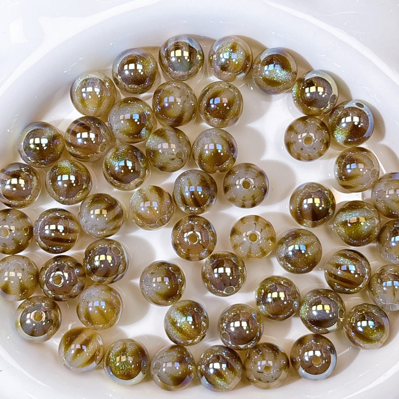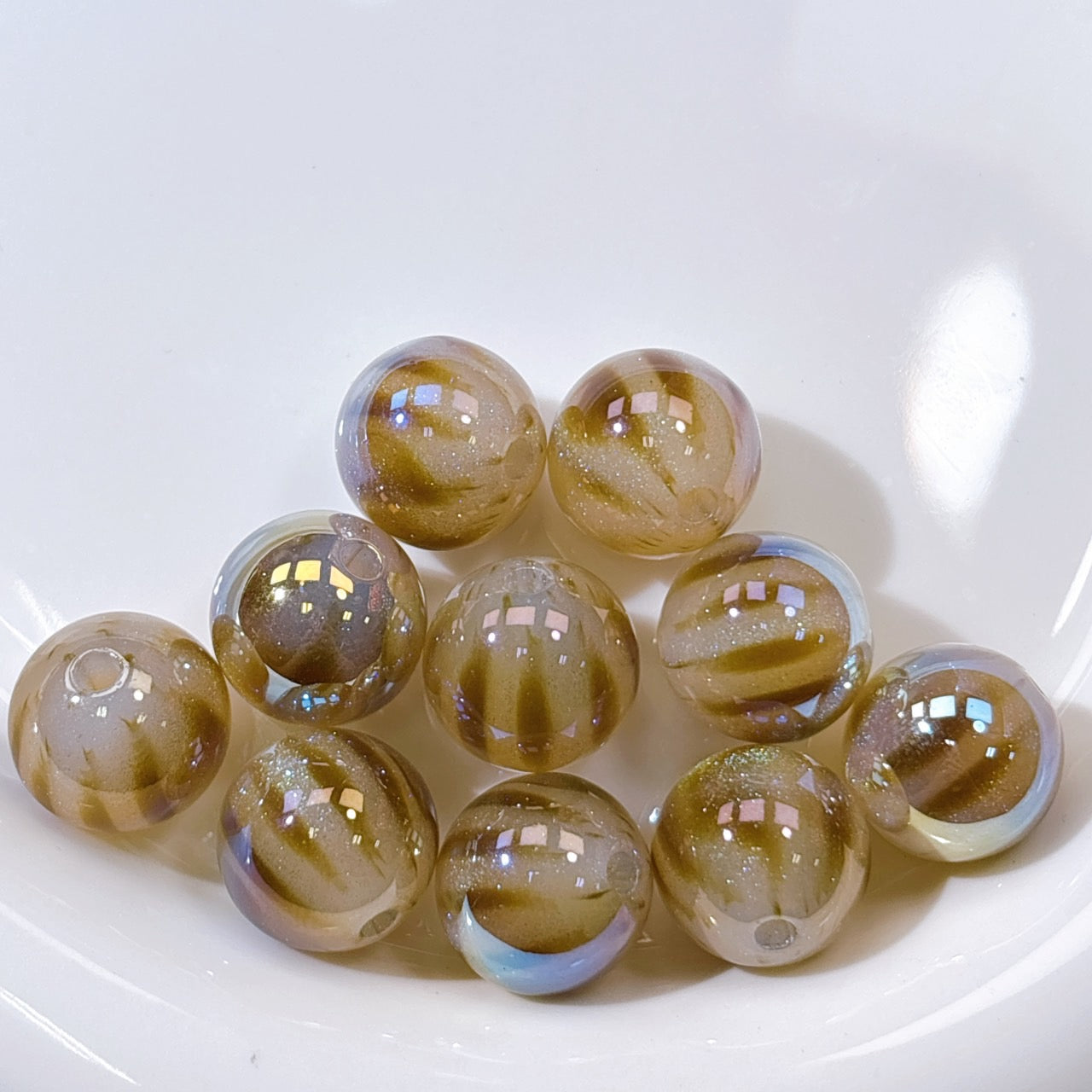 ふんわり縞模様 茶色 光学ビーズ 16㎜