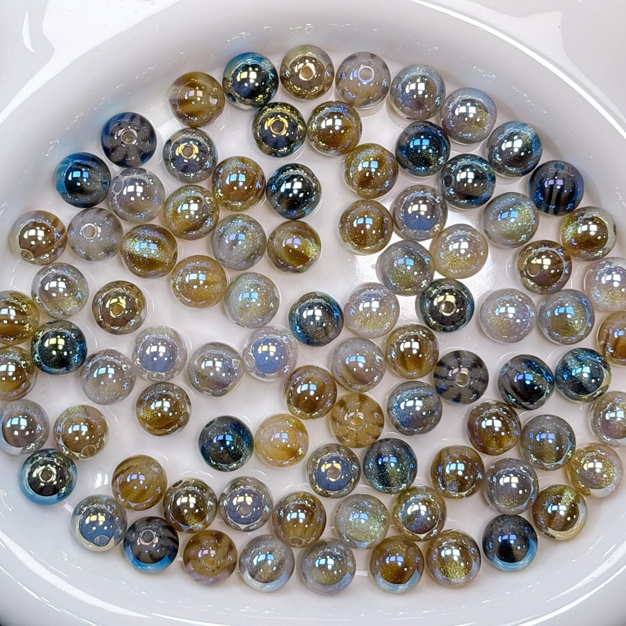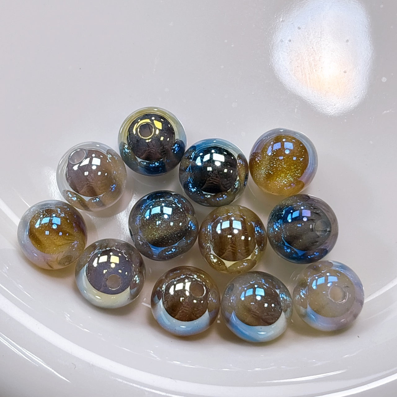 稀にビーズ穴付近が少し平なものが含まれます。