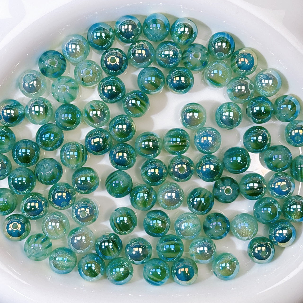 稀にビーズ穴付近が少し平なものが含まれます。