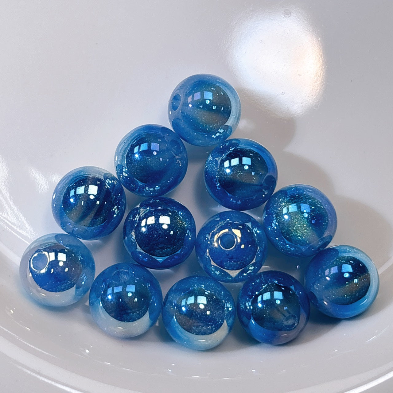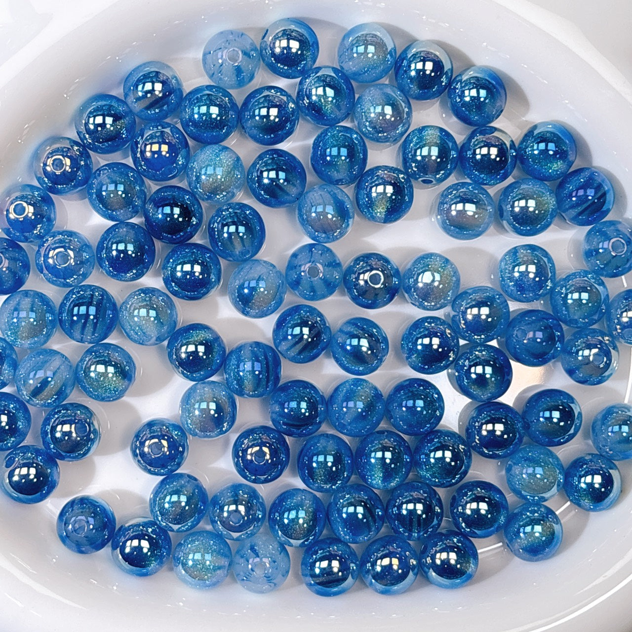 ふんわり縞模様 青色 光学ビーズ 12㎜