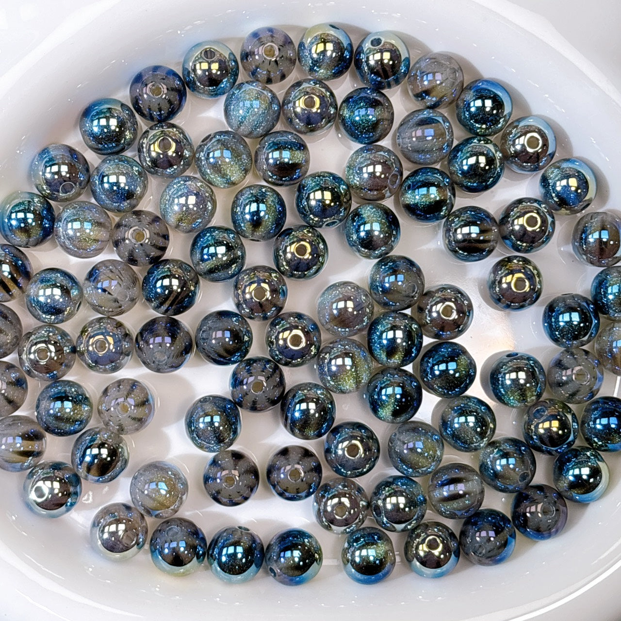 ふんわり縞模様 黒色 光学ビーズ 12㎜