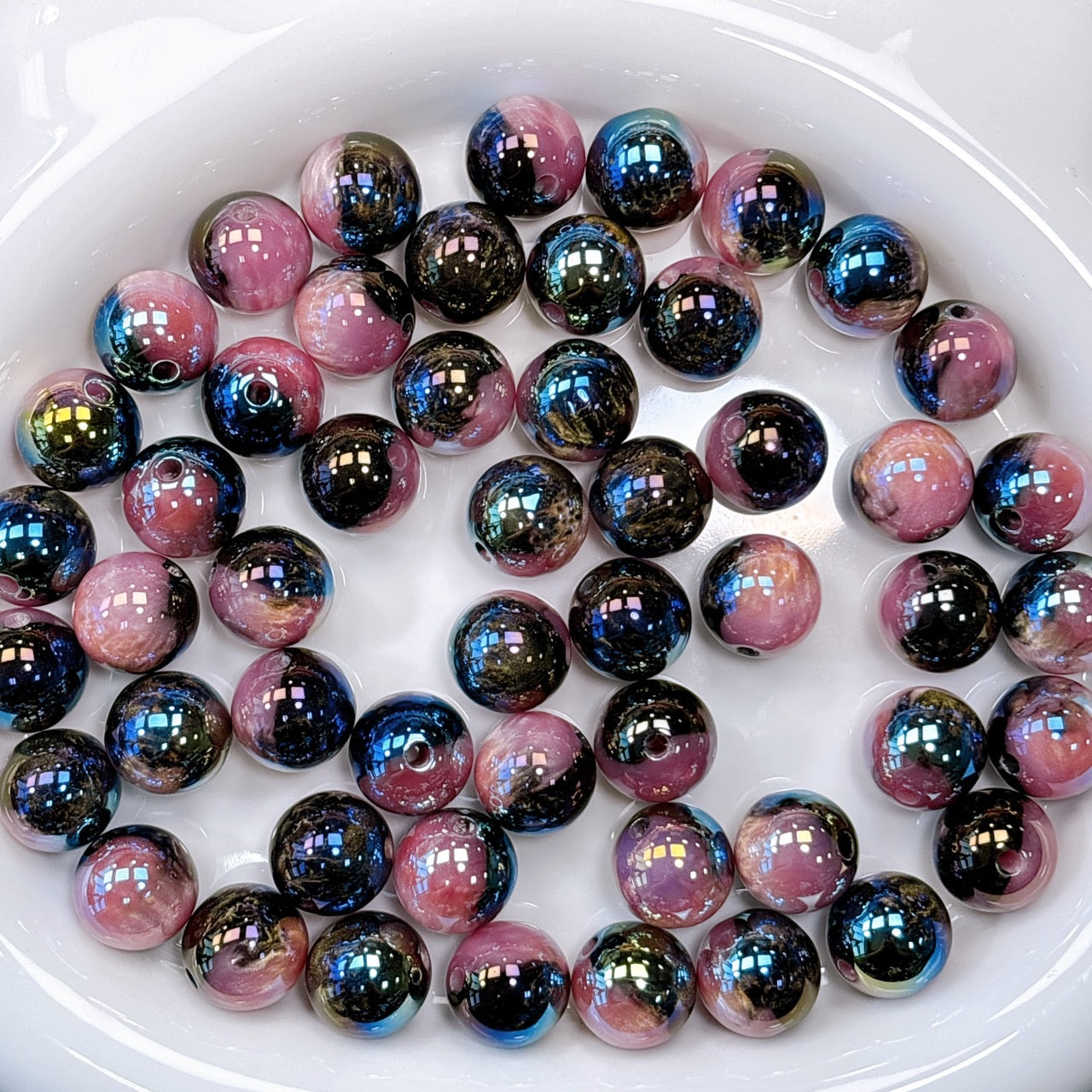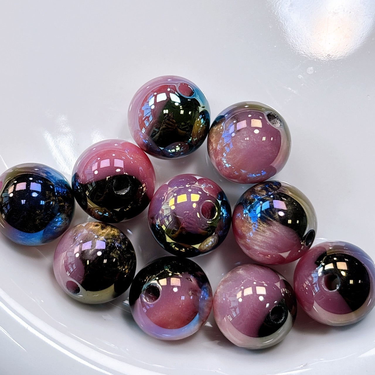 シラーミラージュシリーズ No.10ブラック×パープル 光学ビーズ 16㎜