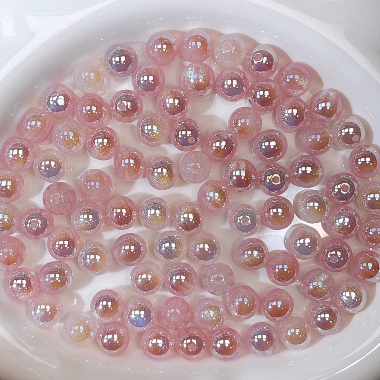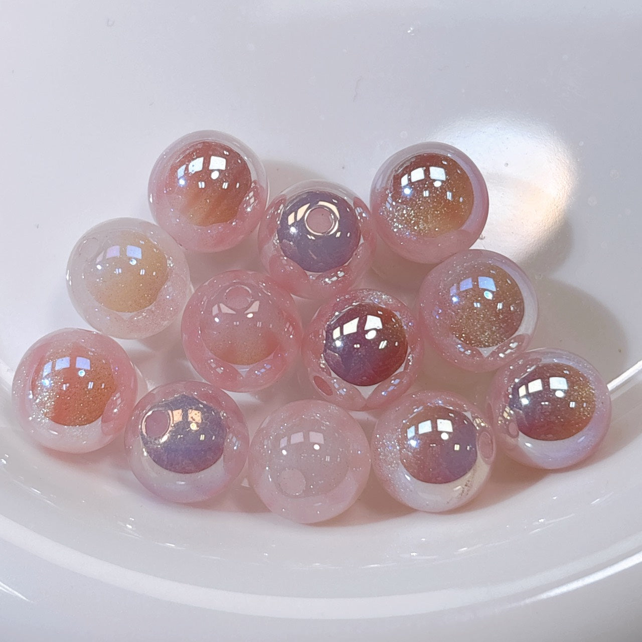 ふんわり縞模様 桜色 光学ビーズ 12㎜