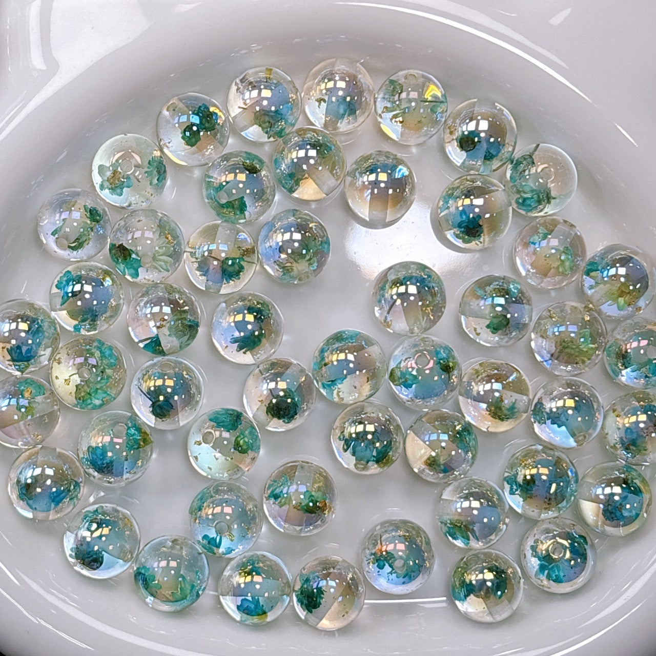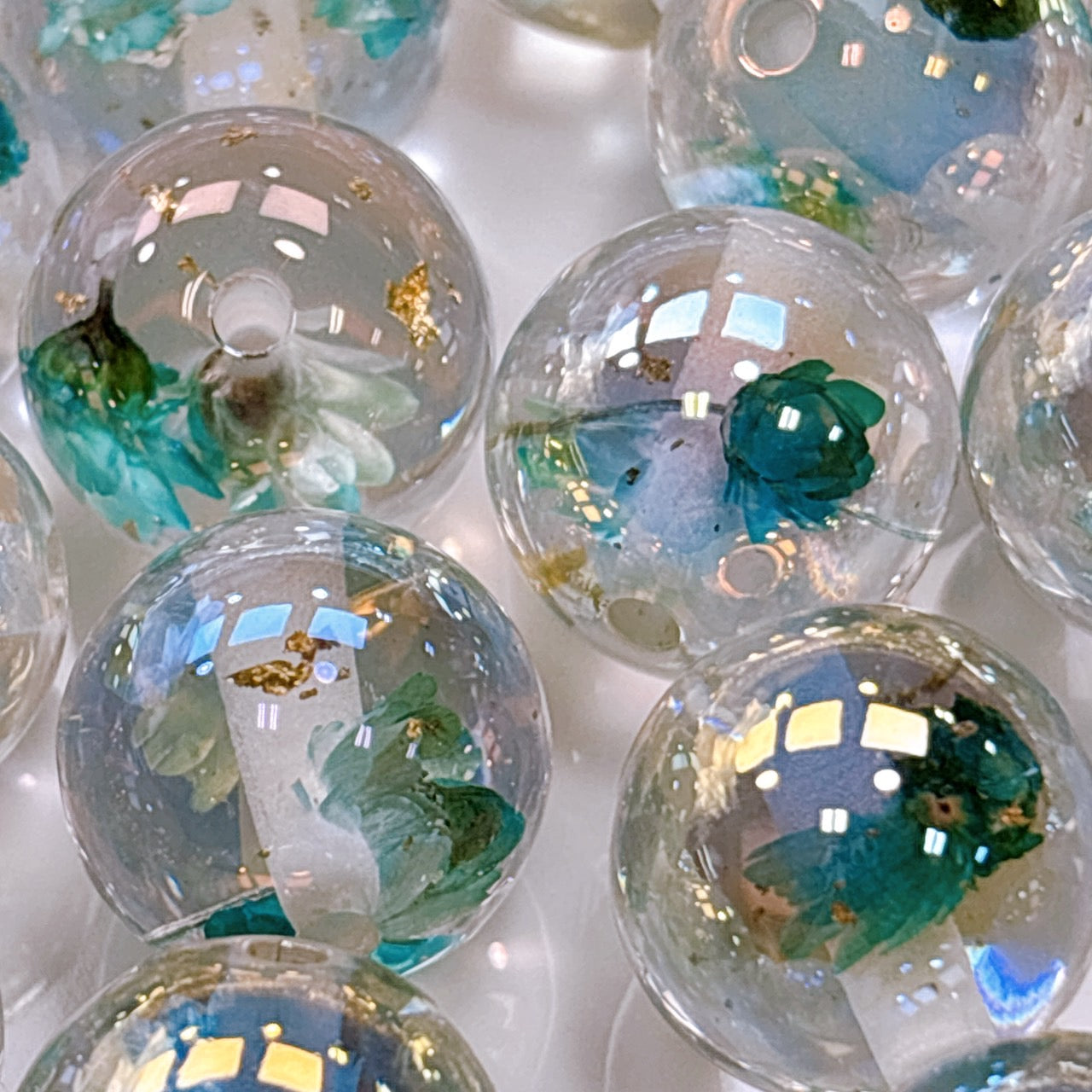 夢花綴シリーズ No.1緑 ドライフラワー・金箔入り 光学ビーズ 16㎜