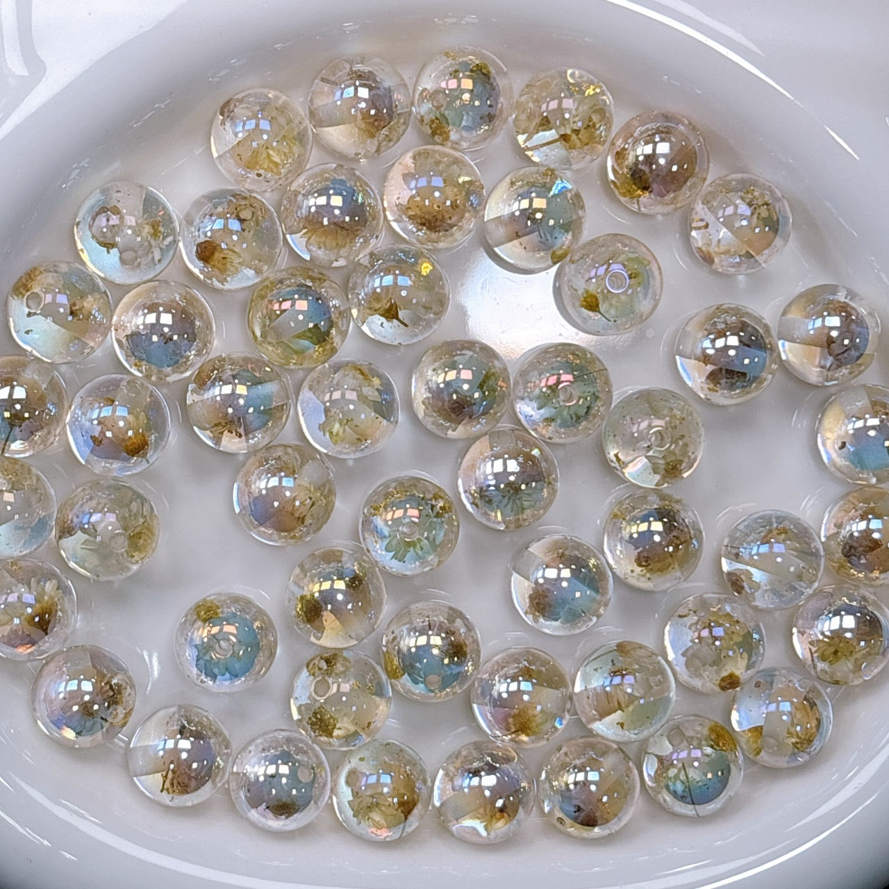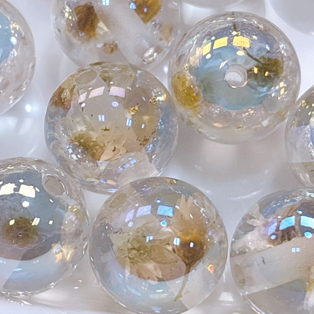 夢花綴シリーズ No.1白 ドライフラワー・金箔入り 光学ビーズ 16㎜