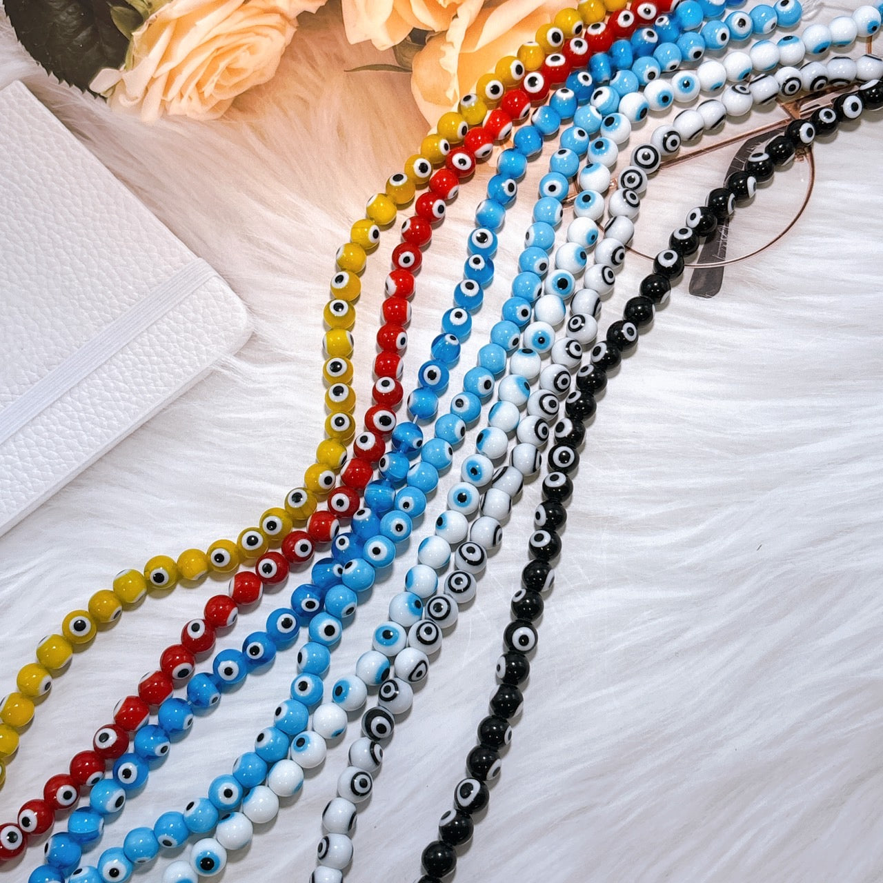 【超特価】🧿目玉ビーズ(ナザールボンジュウ) お守り・厄除け・魔除け 瑠璃ガラス製 8㎜