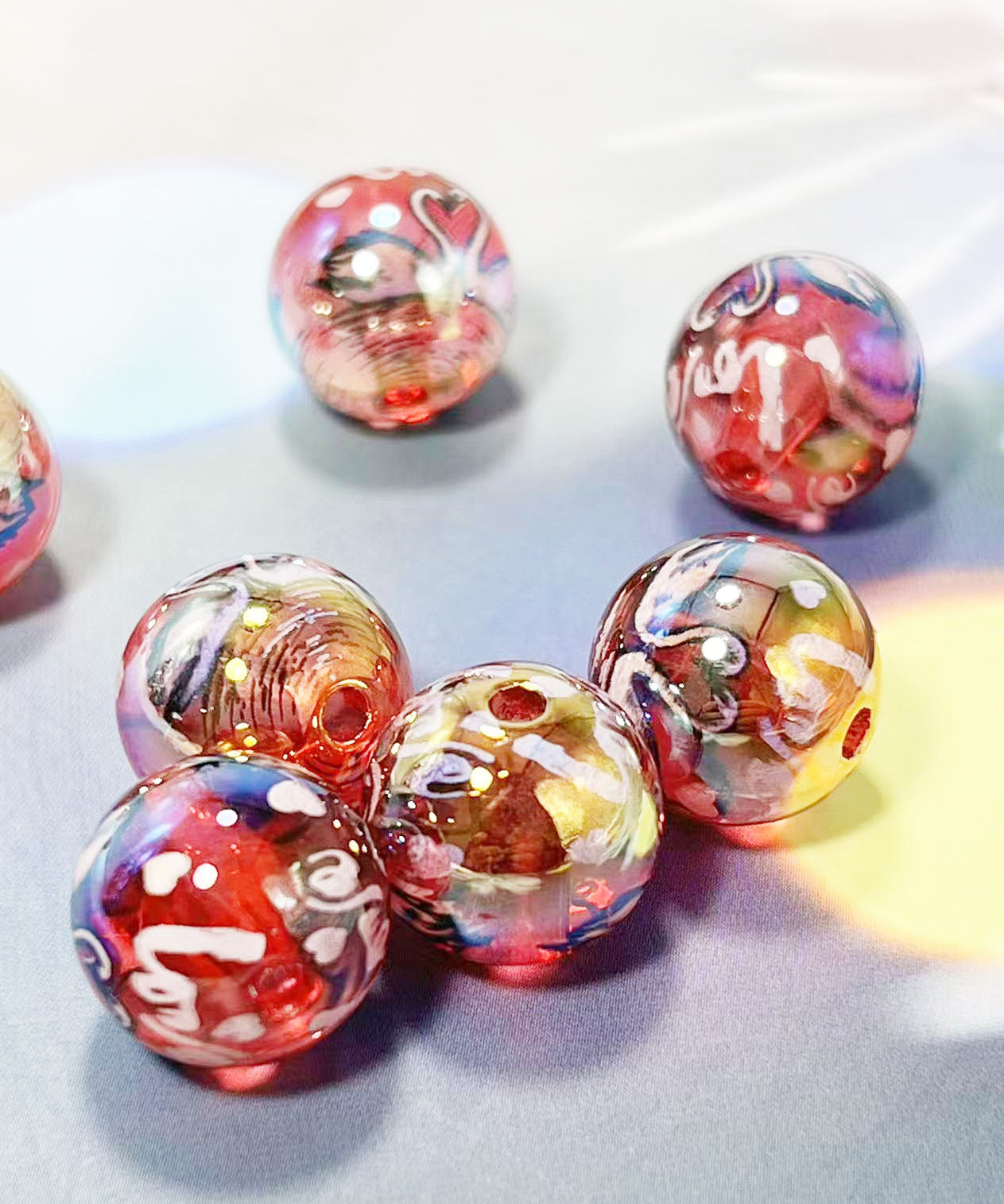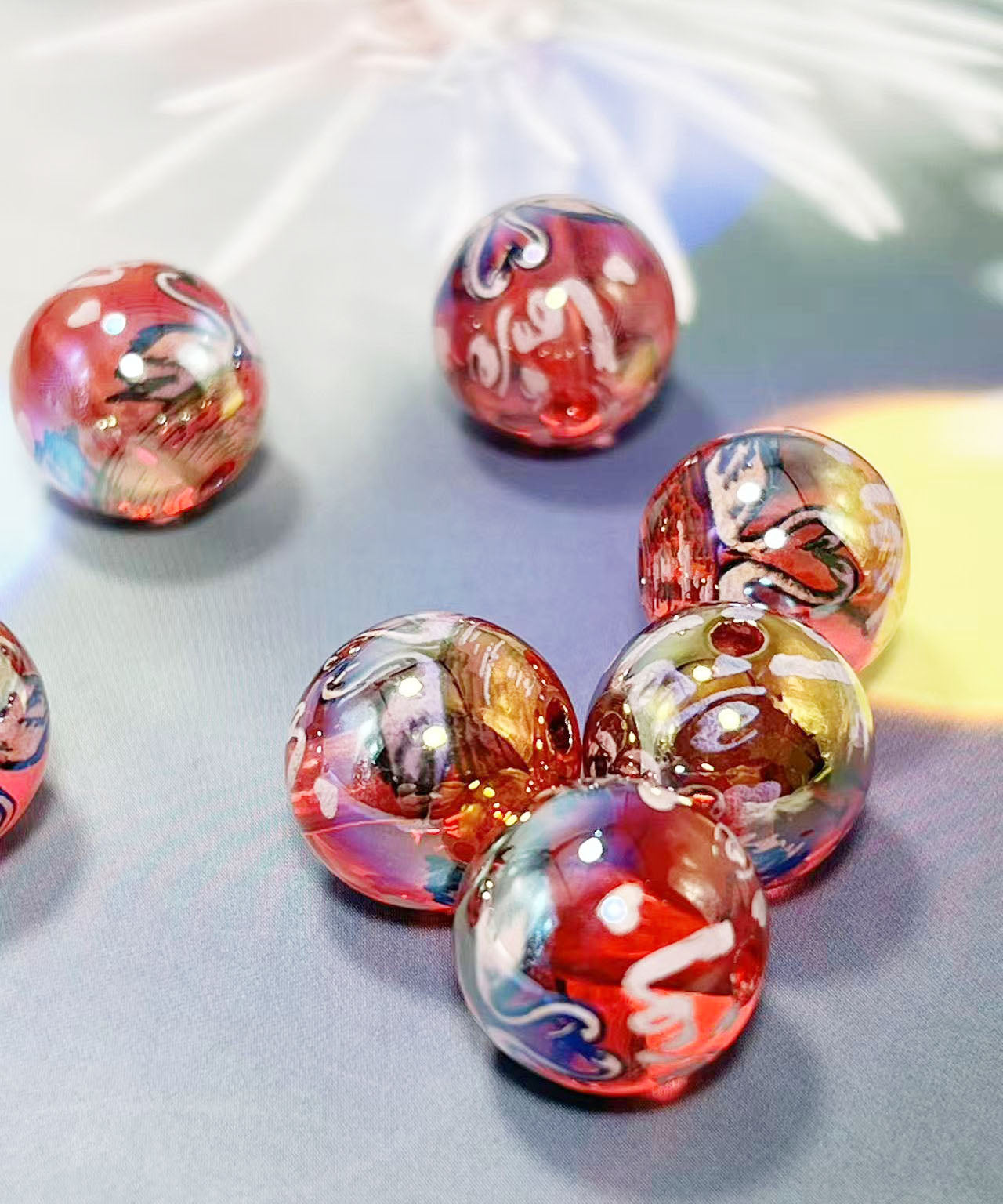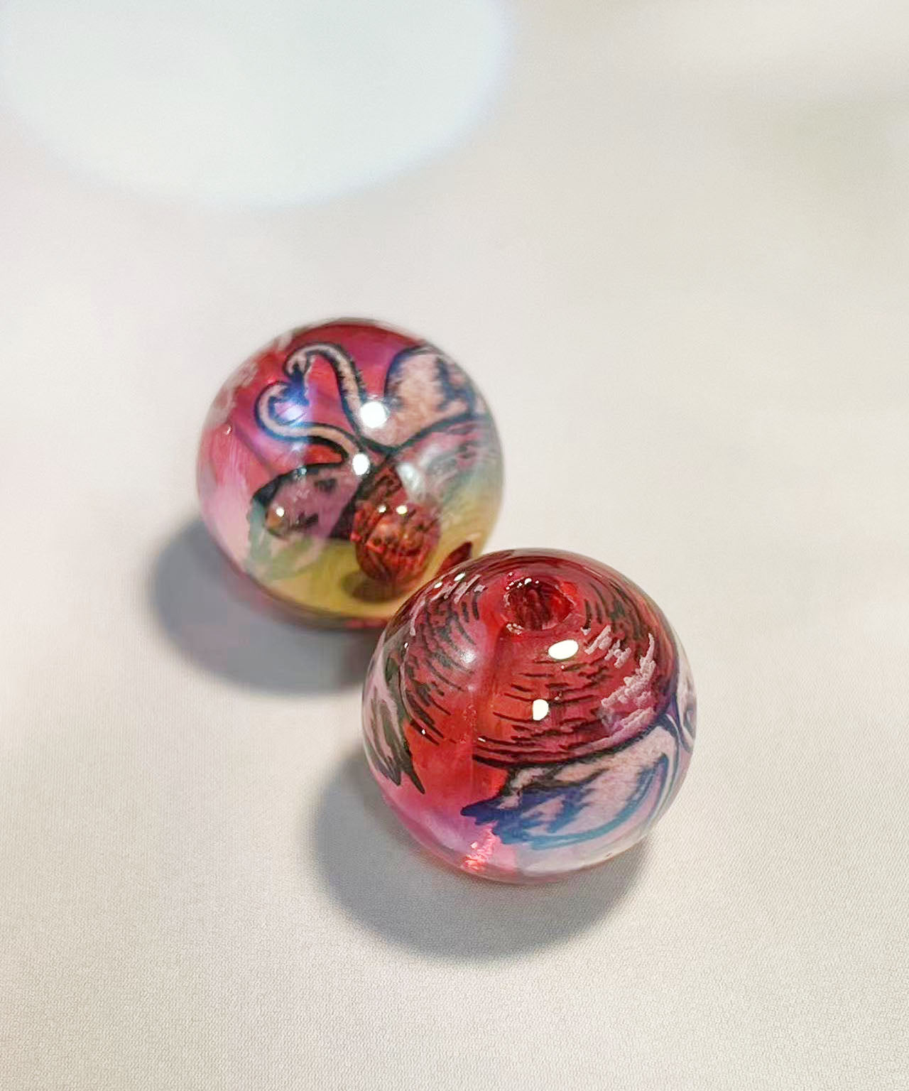 16mm鏡花水月シリーズ|No.7赤・白鳥|幻想モチーフ入りレジンビーズ