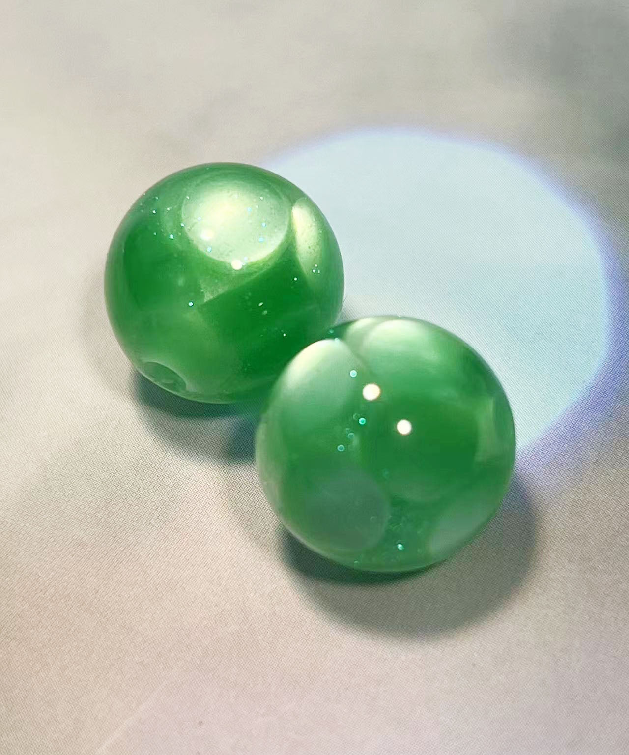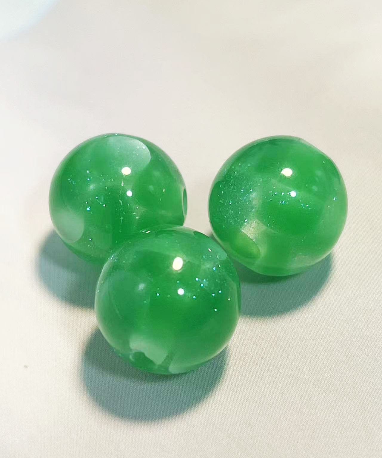 16mm魔法樹脂ビーズ「深い夢幻」グリーン系