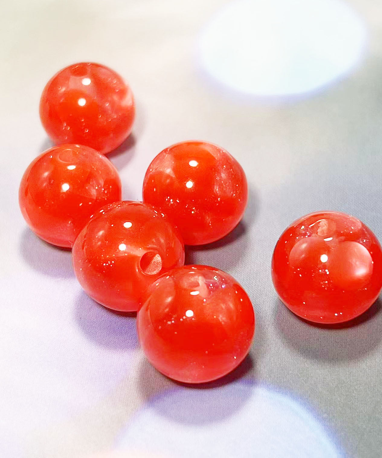 16mm魔法樹脂ビーズ「深い夢幻」レッド系