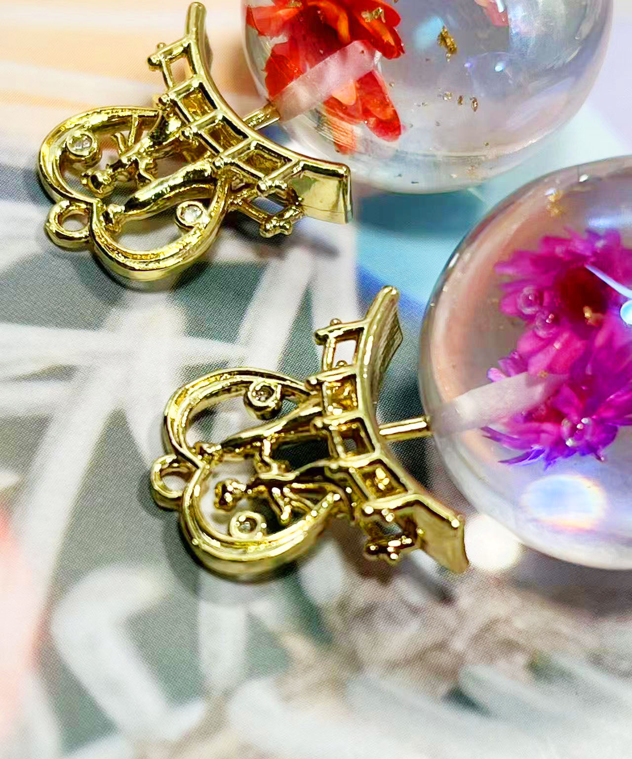 25㎜半穴ビーズ用・ラインストーン付き ハート鳥居風 ヒートン